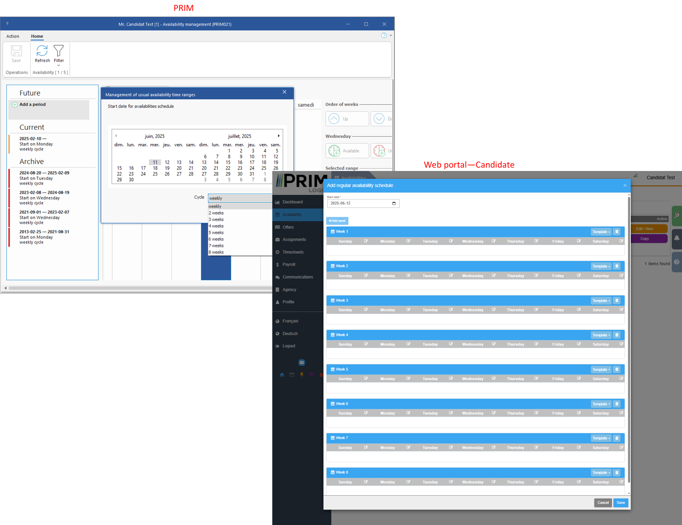 24.Candidate - Usual availabilities: Enable the use of a cycle of up to 8 weeks for the usual availability of a candidate. (See image)