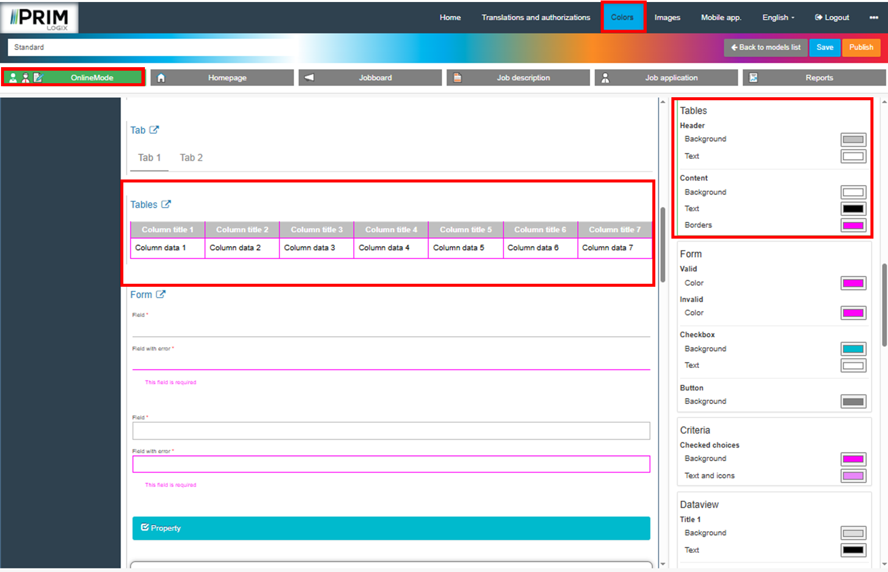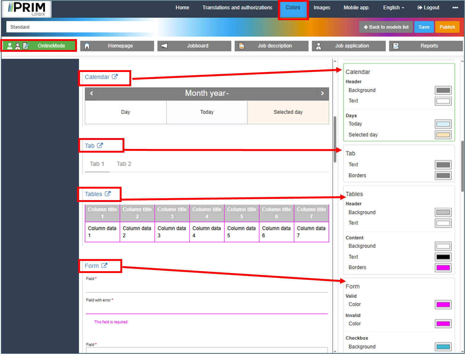 21.Backoffice: Improved navigation in the Colors > Online Mode section, thanks to the addition of sub-headings in the main page identifying the items found in the right-hand panel. The