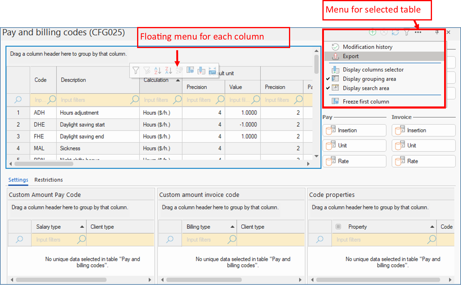 11.New advanced features in some tables: A new grid format with advanced functionality has been integrated into some windows containing tables. These new features include the ability to show or hide columns, group data, modify sorting, add search fields to each column, and much more. Currently available only in a few configuration windows, these new features will gradually be integrated in all windows containing tables. (See image)