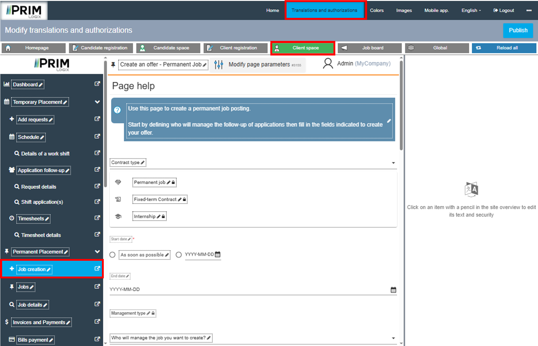 12.Client Web portal / Permanent job offers: Complete overhaul of the permanent offer creation form in the client area.