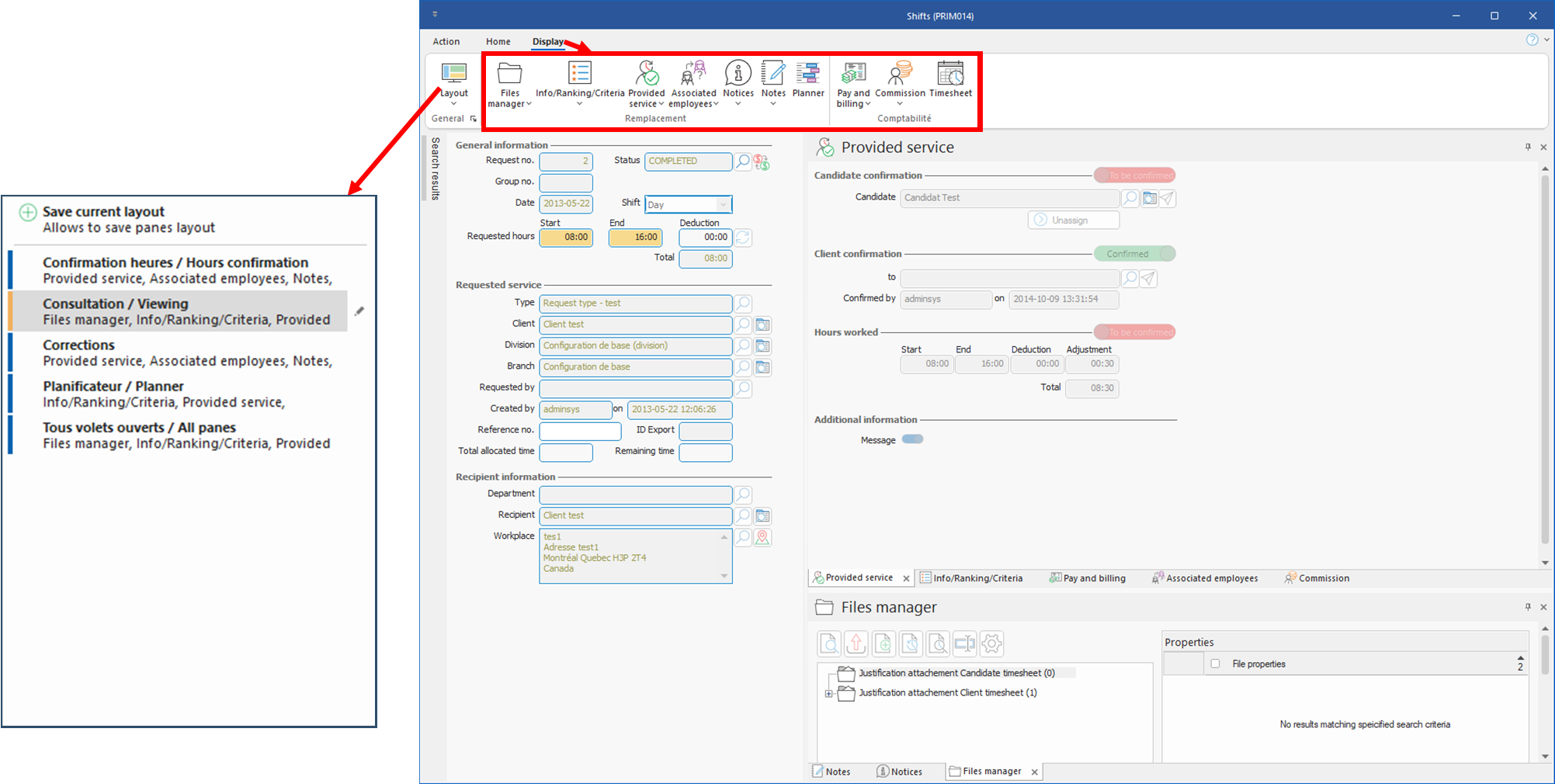 6.Request-related documents and Web display: It is now possible to display request-related documents on proposal or assignment tiles on the candidate Web portal. Documents from the following entities can be displayed, provided they comply with the display conditions: division, branch, requesting client or receiving client, shift, type of request (CFG047) grouped requests (mission), job offer.