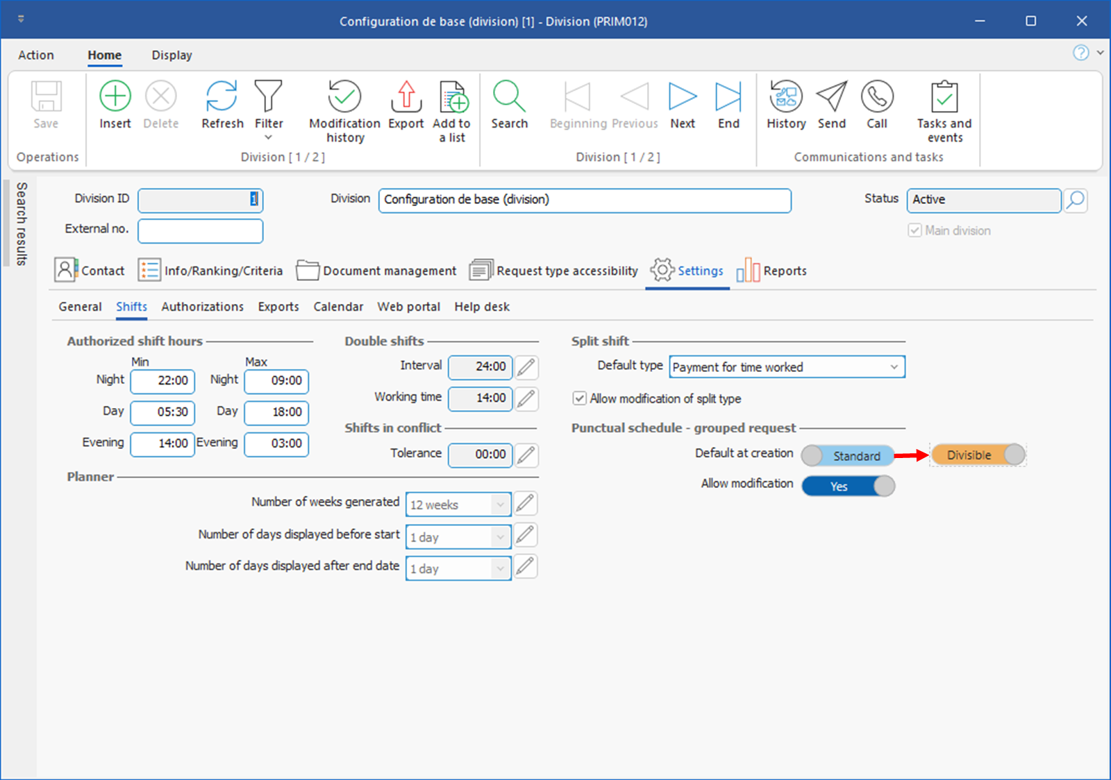Client action: Enable the setting in the division if you wish to allow this type of schedule, or configure it by default. (See image)