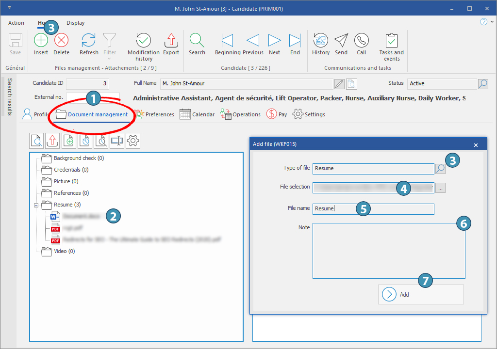 In the example below, we use the "Candidate" window to add a resume.