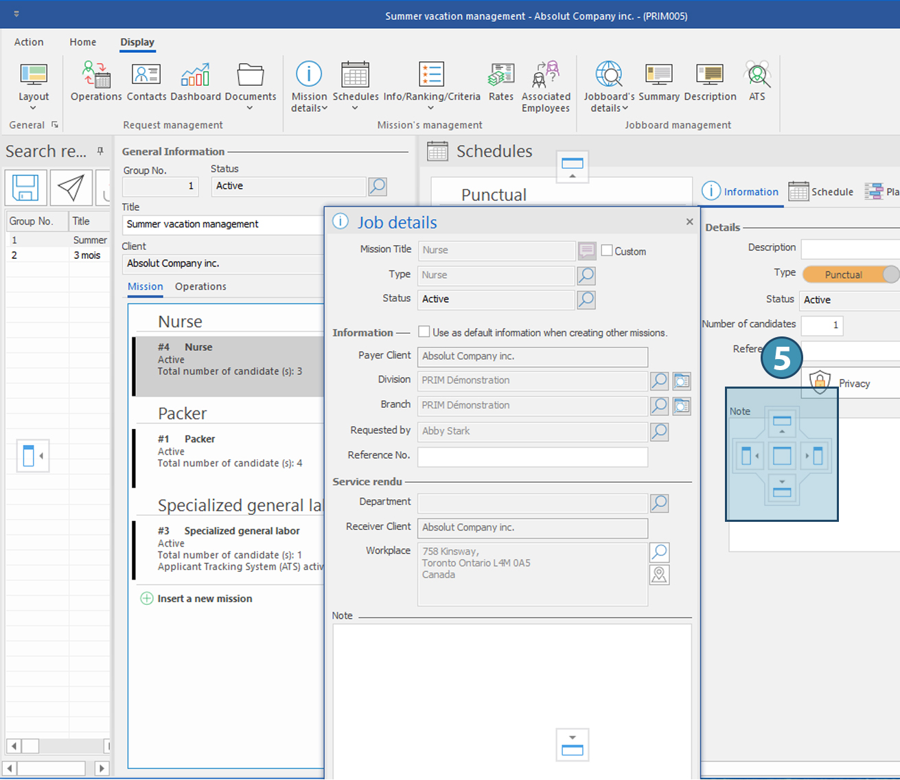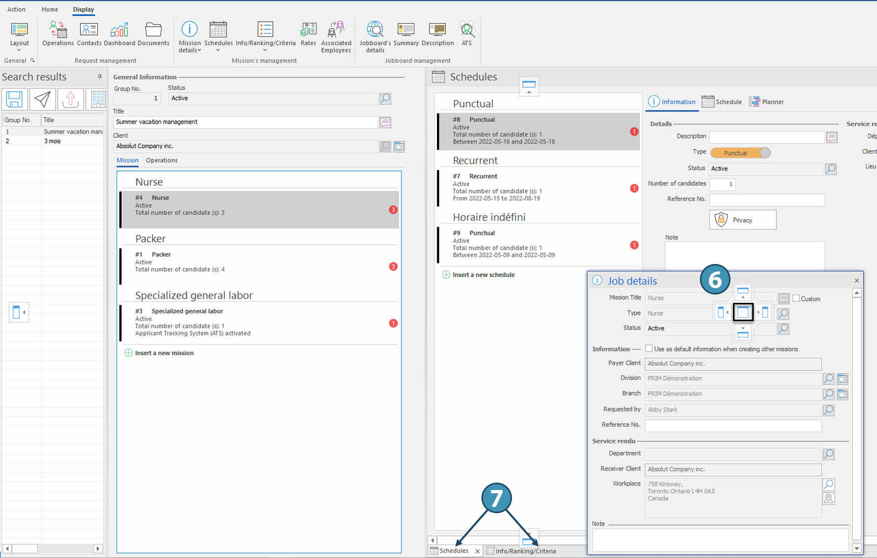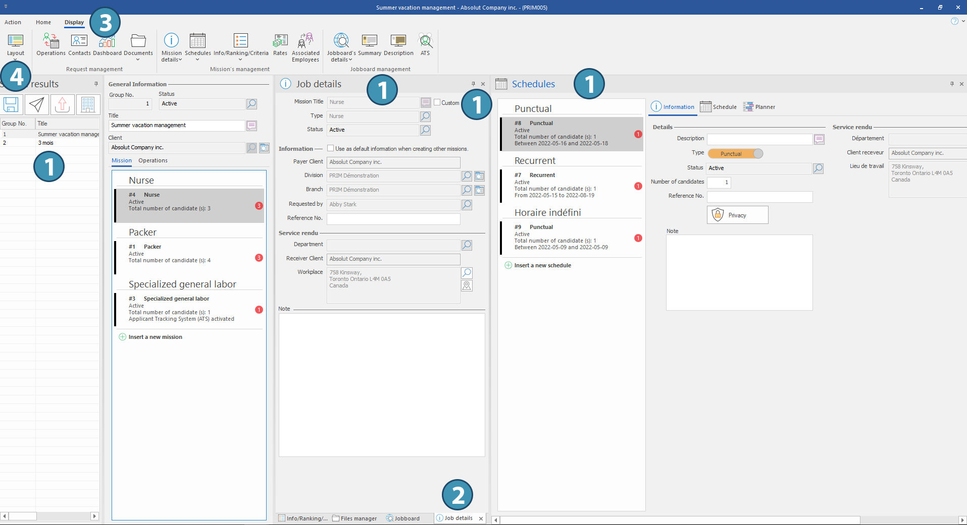 The “Display” menu shows all available panes in the window. Click on a topic to open the corresponding pane (3). Use the “Layout” button to save, load or edit a specific layout for panes (4). To learn more, read the section “Save a layout".