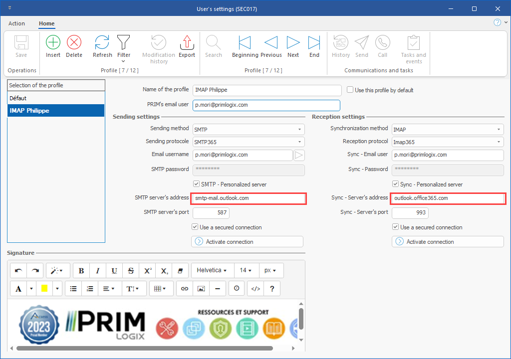 PRIM's email user: Shared mailbox
