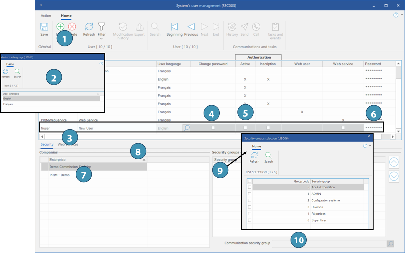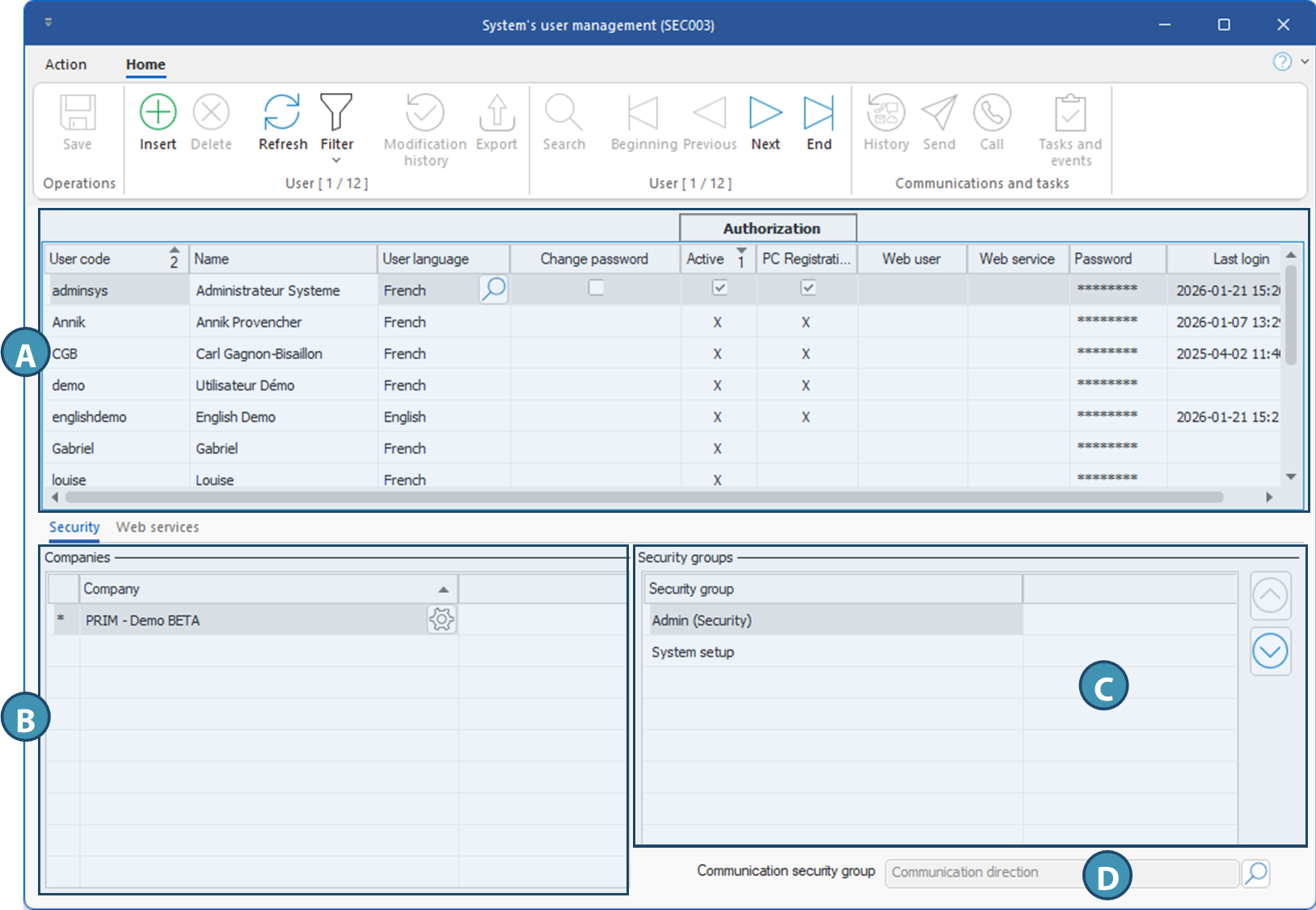 When a user leaves your organization, it is important to uncheck the box ''Active'' in order to remove the access to PRIM. If PRIM was installed on his personal computer, you have to remove this computer off the list of the authorized computers, see section Computer authorization management..
