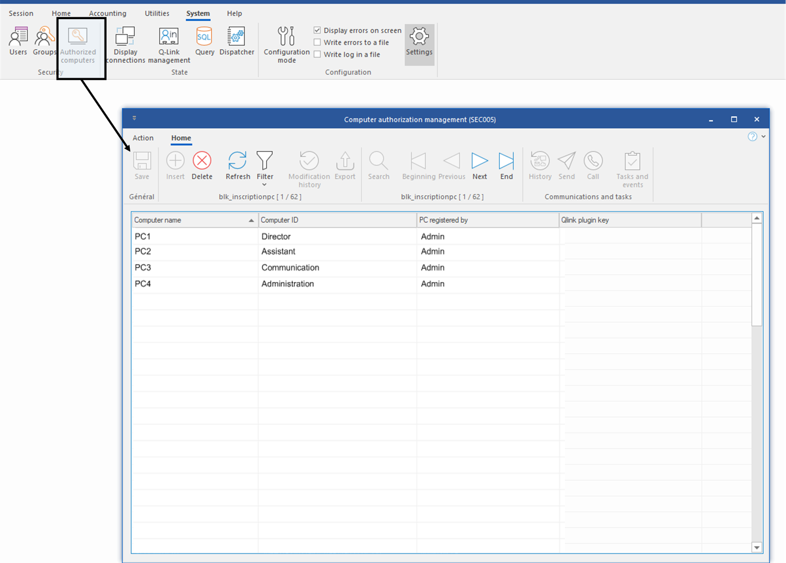 A user with the proper access permissions can view and manage the computers authorized to connect to PRIM Logix.