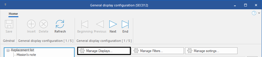 In a window that do not allow to set up a display, the button will be greyed out. To access display templates or create a display, first access the "General display configuration" window by clicking on