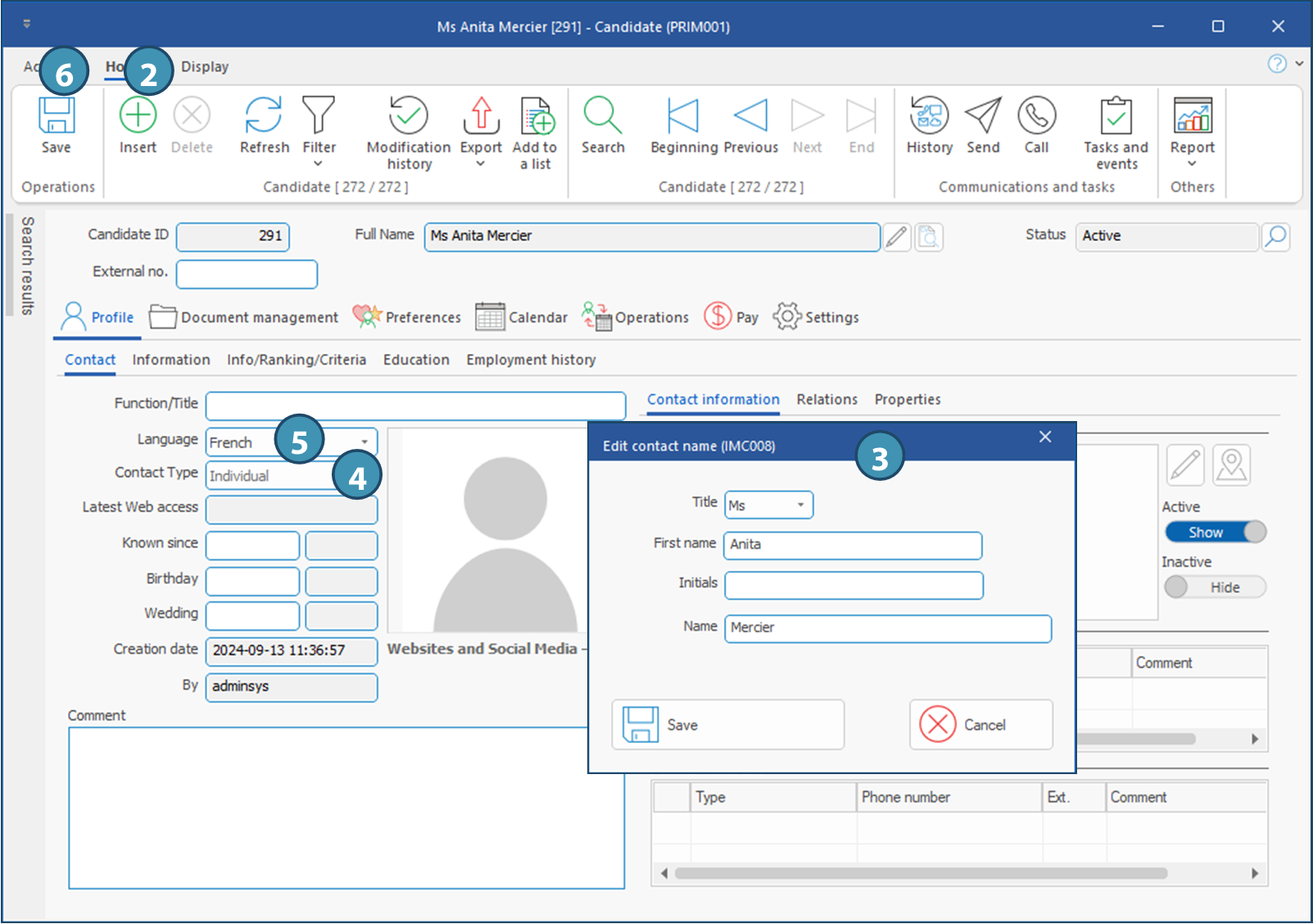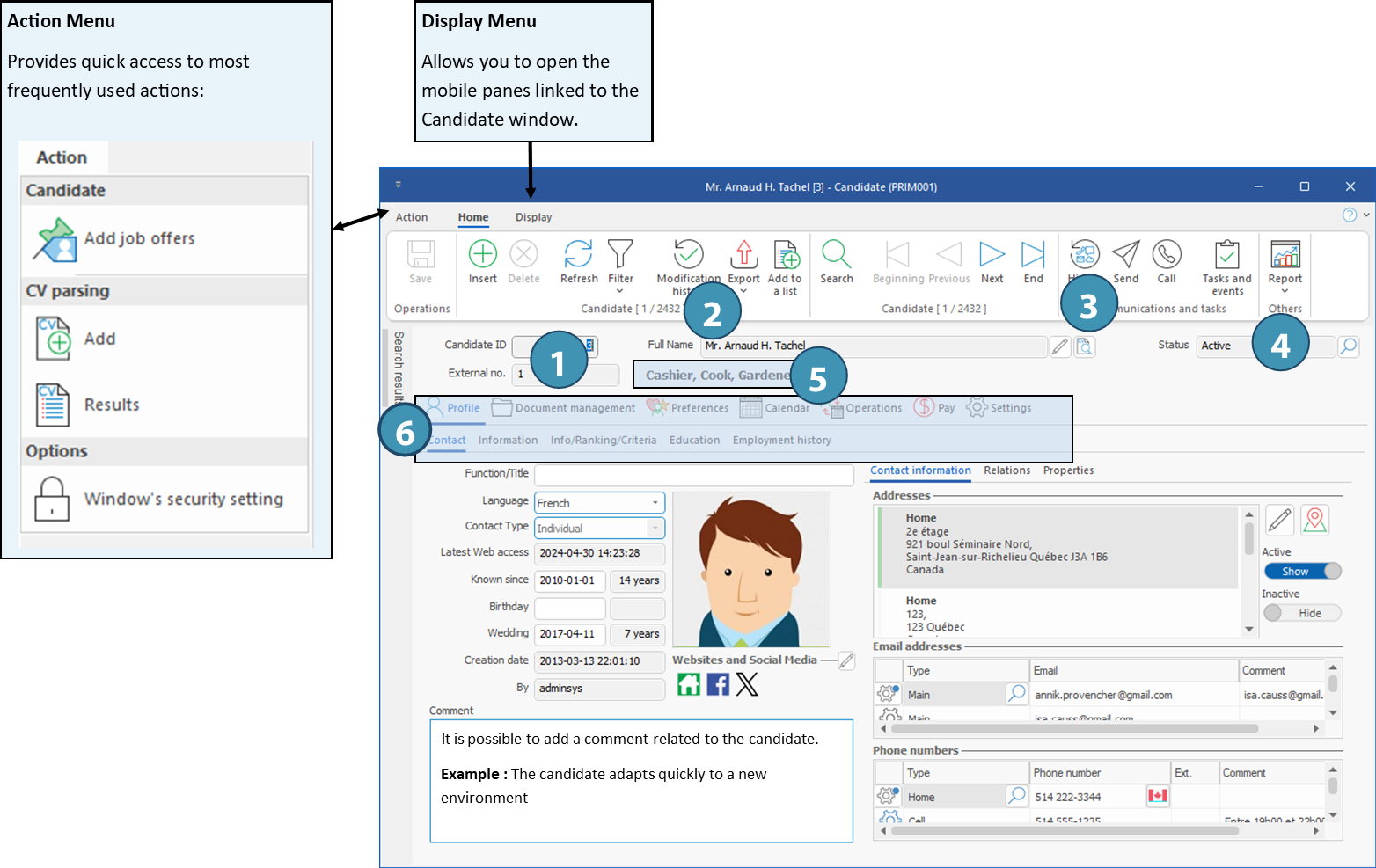 5.Candidate's function(s): This field is a visual reminder of the choices ticked in the "Function" subject in the tab "Infos/Rankking/Criteria".