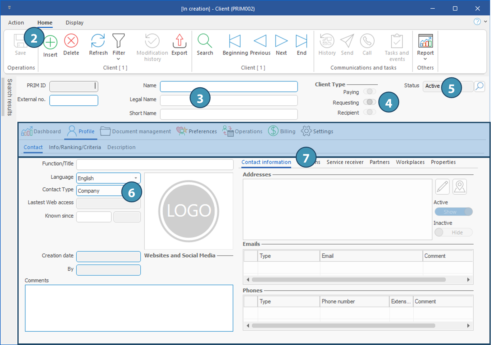 3. Client type : PRIM Logix allows to distinguish between 3 client types. Consult the section below to learn more.