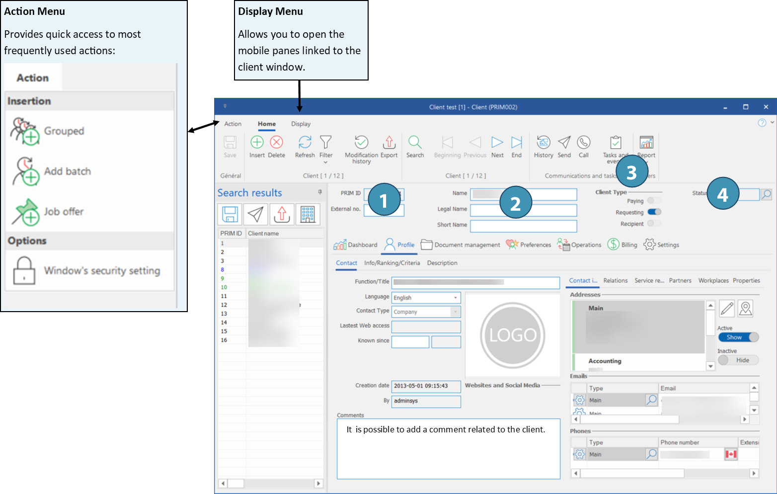 1.In the Home ribbon of the main PRIM window, click on (Client) to launch the window.