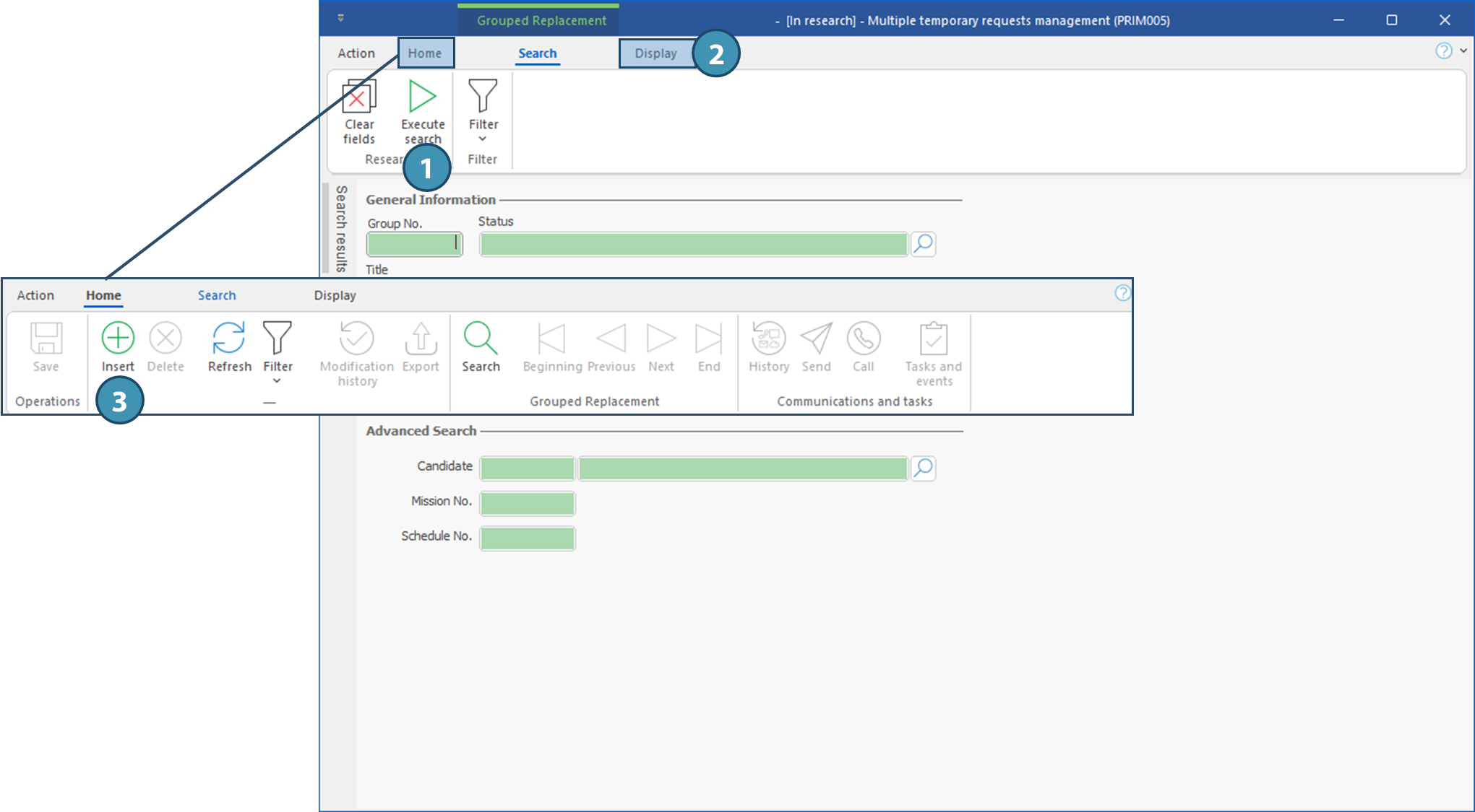 It is composed of one or more mission(s), themselves composed of one or more schedule(s). Each schedule is composed of one or more shifts, listed in the "Operations" tab of the grouped request. Generally speacking, the goal is to assign the same candidate to the whole set of shifts in the schedule.