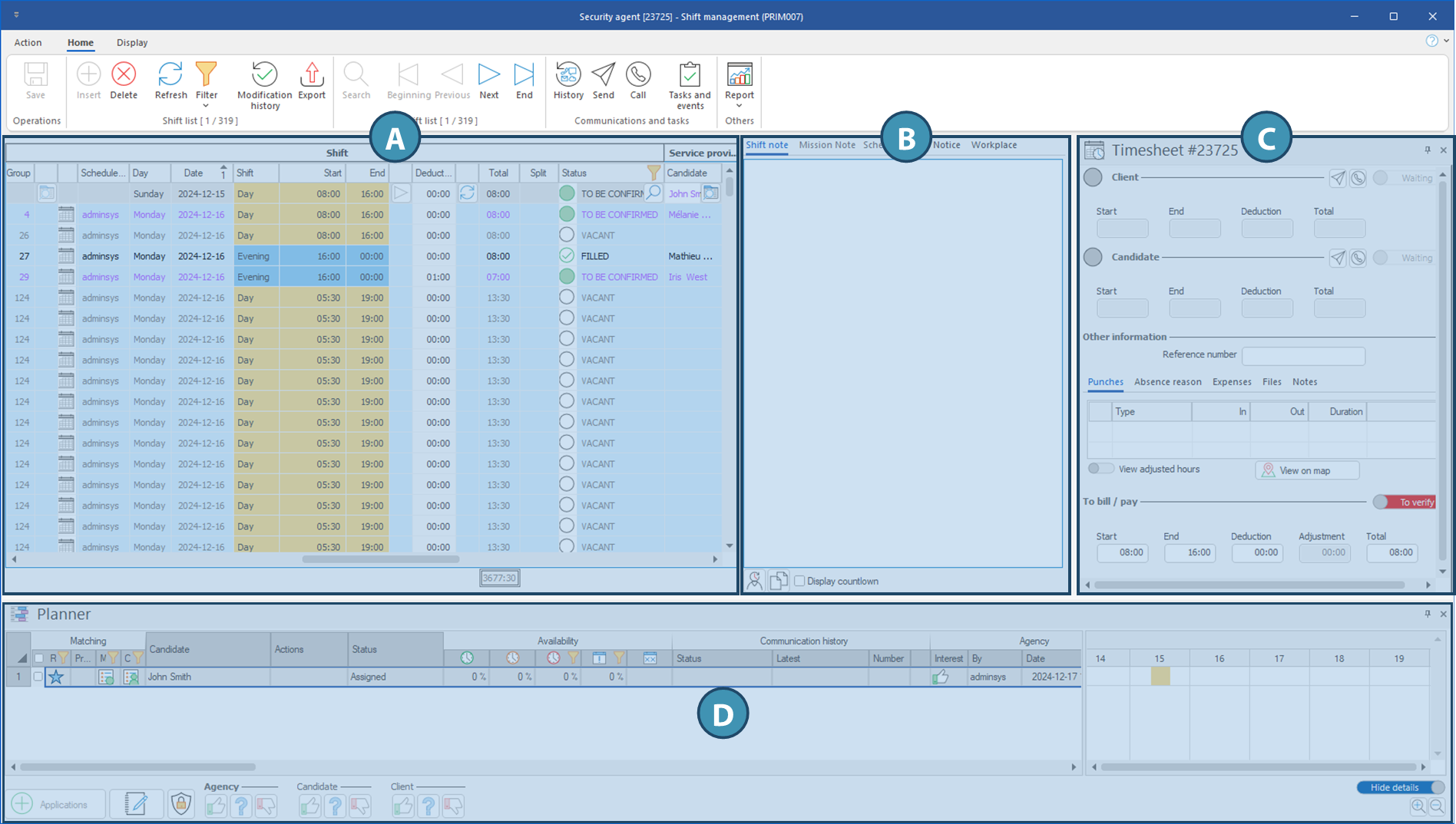 This window allows the consultation and management of all shifts.