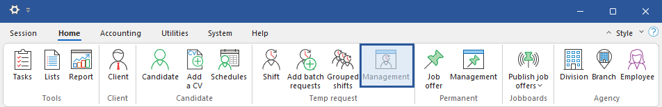 To open it, from the Home ribbon in PRIM, click on the button Management in Permanent section.