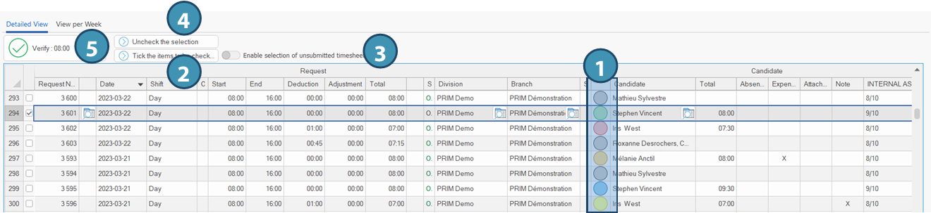 Once you have selected the timsheets to be validated, click on Verify (5).