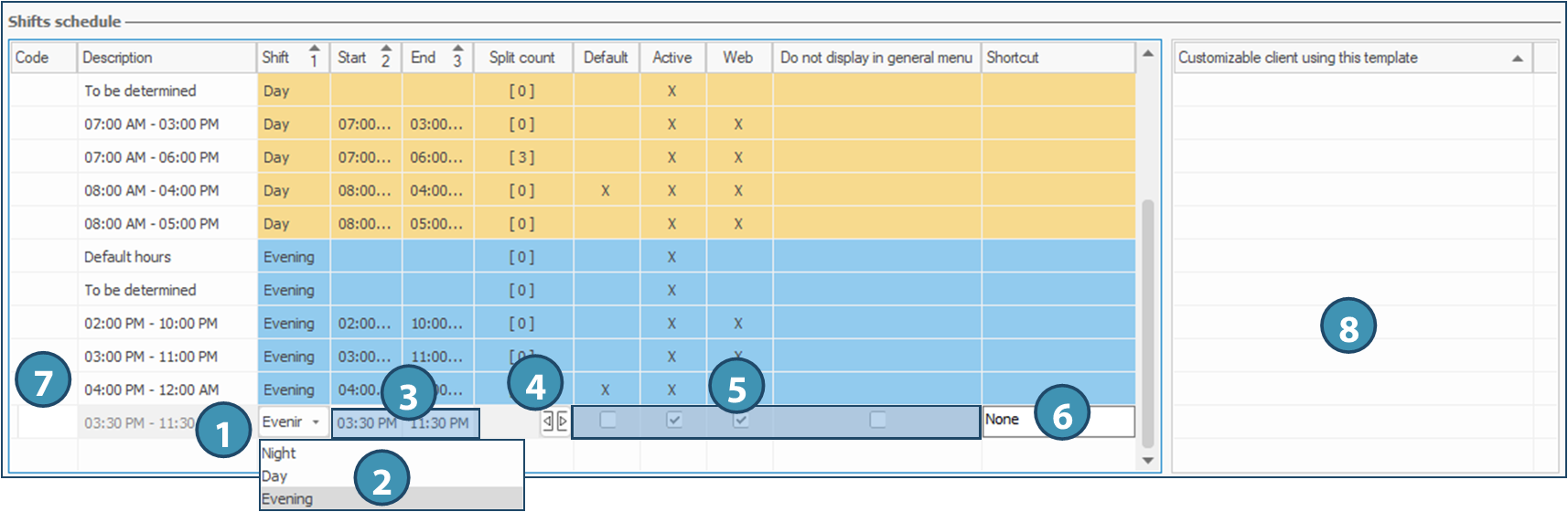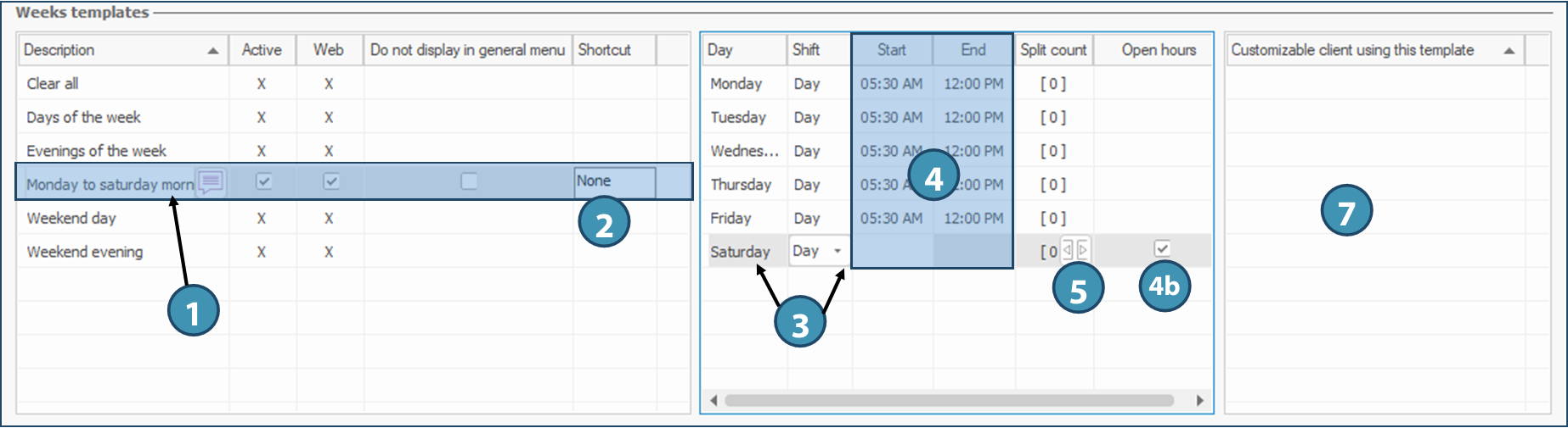 As for availability, there is two types of templates: shifts schedules (A) and weeks templates (B).