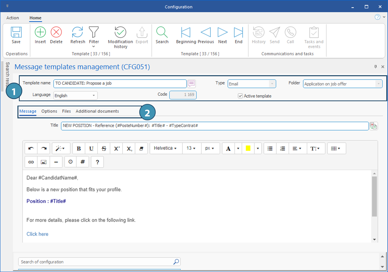 and in the list, choose "Message templates management (CFG051)" to display the window.
