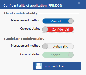 Set up the confidentiality of the application for the candidate or the client. Choose a management mode – either automatic or manual – then specify if you wish the application to be fully disclosed to the concerned party.