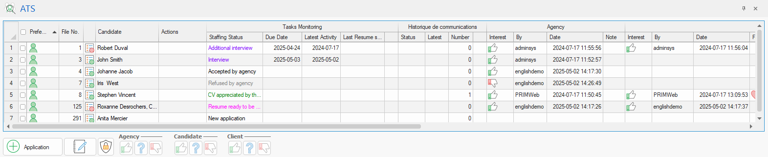 The interest buttons are used to specify, for each candidate, the interest of the agency, the candidate and the client: