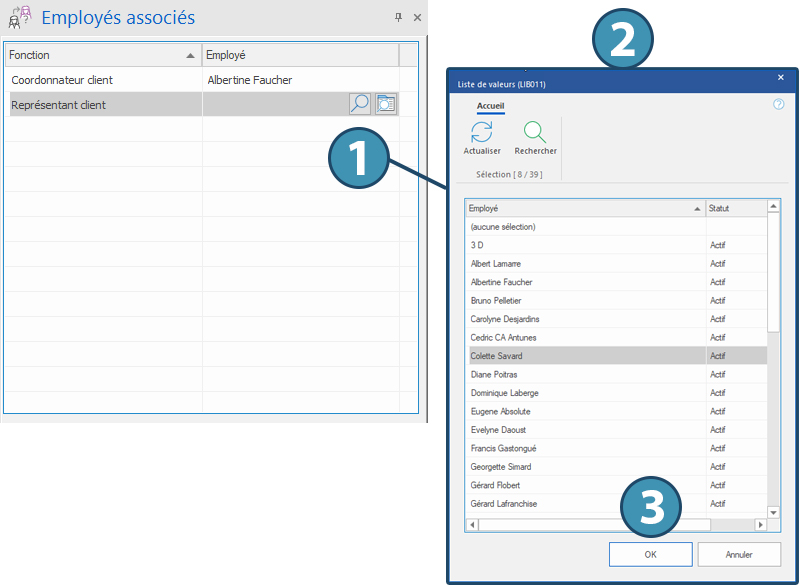2.The window allowing you to selected associated employees is displayed.