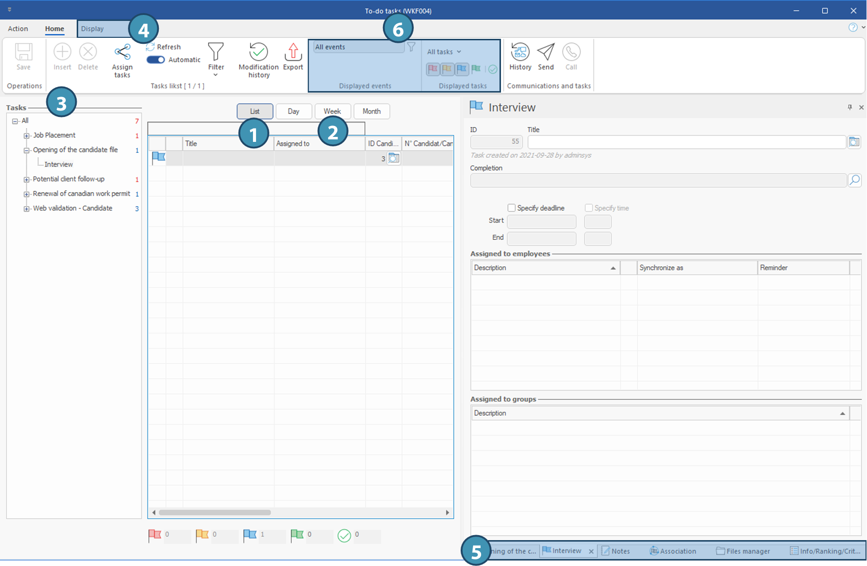 The To-do tasks (WKF004) and Events and tasks management (WKF011) windows display information on the progress of tasks related to a current event, from creation to archiving. For details on creating an event, refer to Events and tasks management.(coming soon)