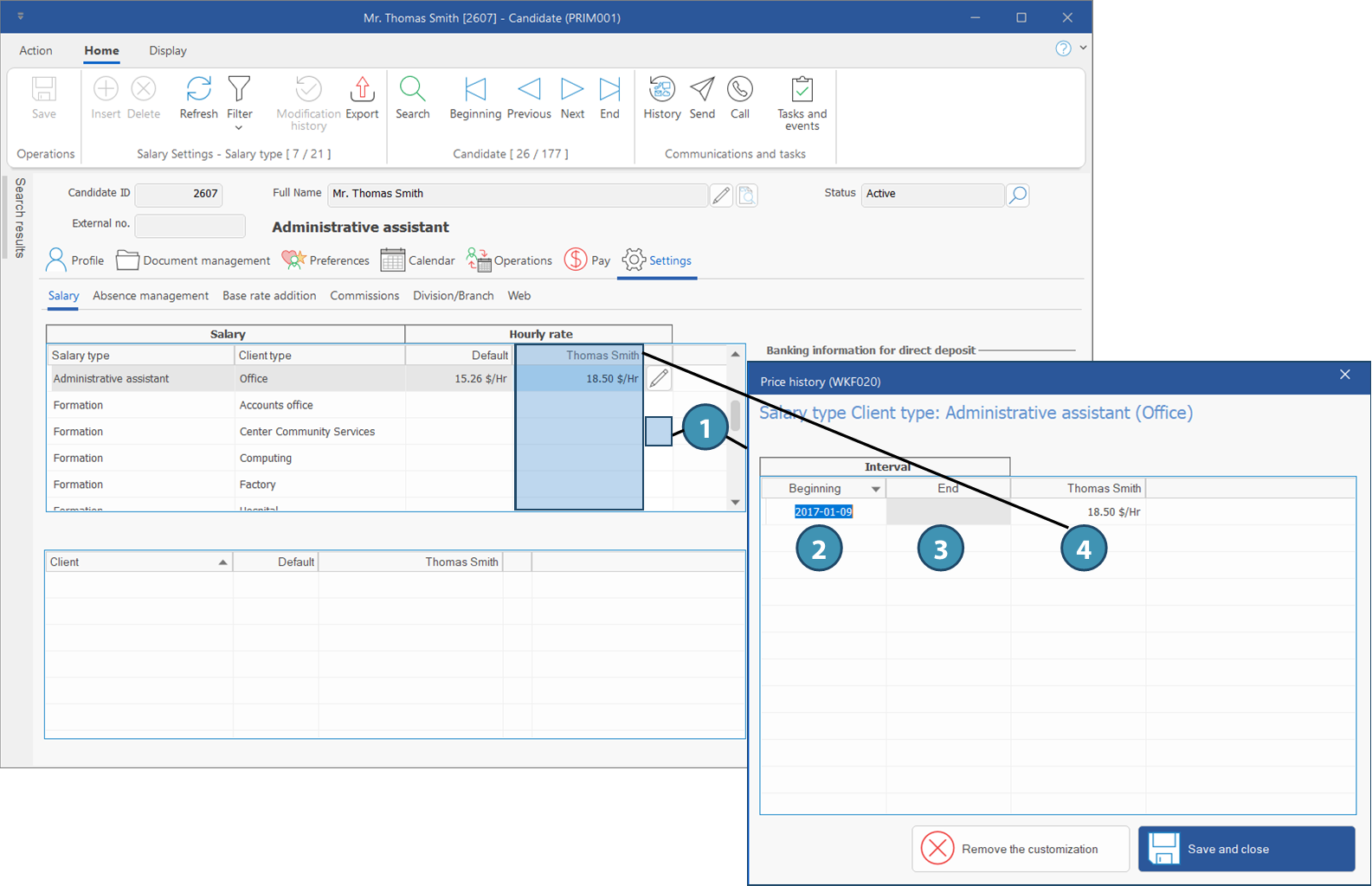 In the example below, the salary rate is modified for a candidate.