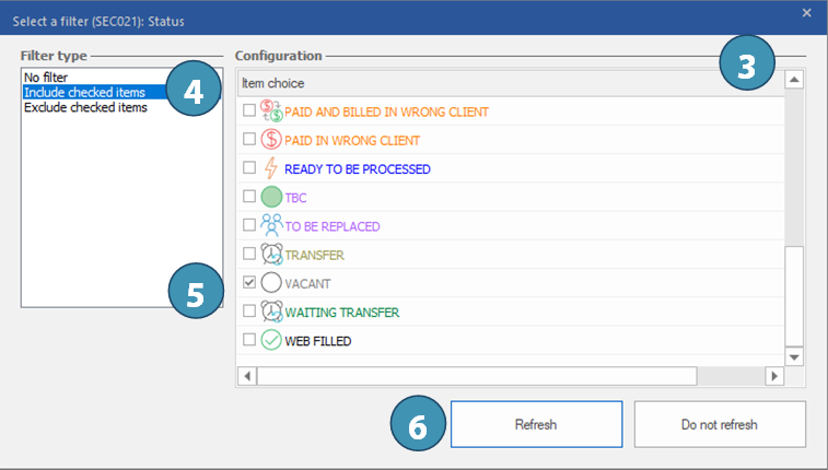 4.Select the filter type "Include checked items".
