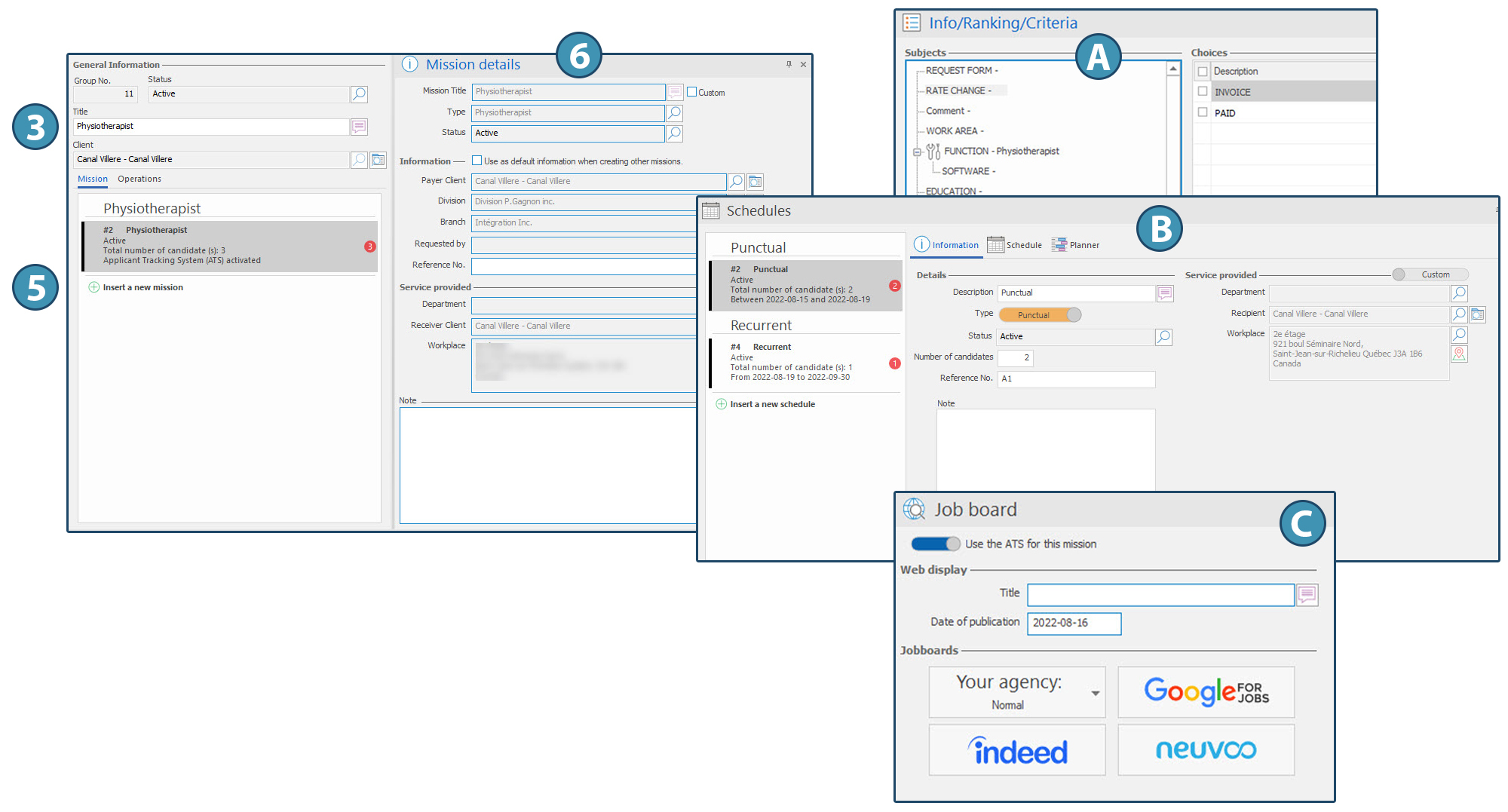 -Adding some criteria and information specific to the mission, using the pane "Info/Ranking/Criteria" (A)