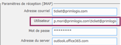 enter the password of the user's mailbox entered in the previous field.