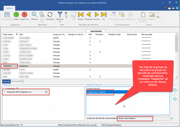 Dispatcher parameters in the system's Enterprise Management Window (SEC002)