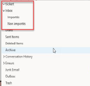 -Folder to process: enter the name of the mailbox configured on the server for incoming emails (Note: the folder to process is always structured from the "Inbox", even if the display is "Inbox". -see image below)