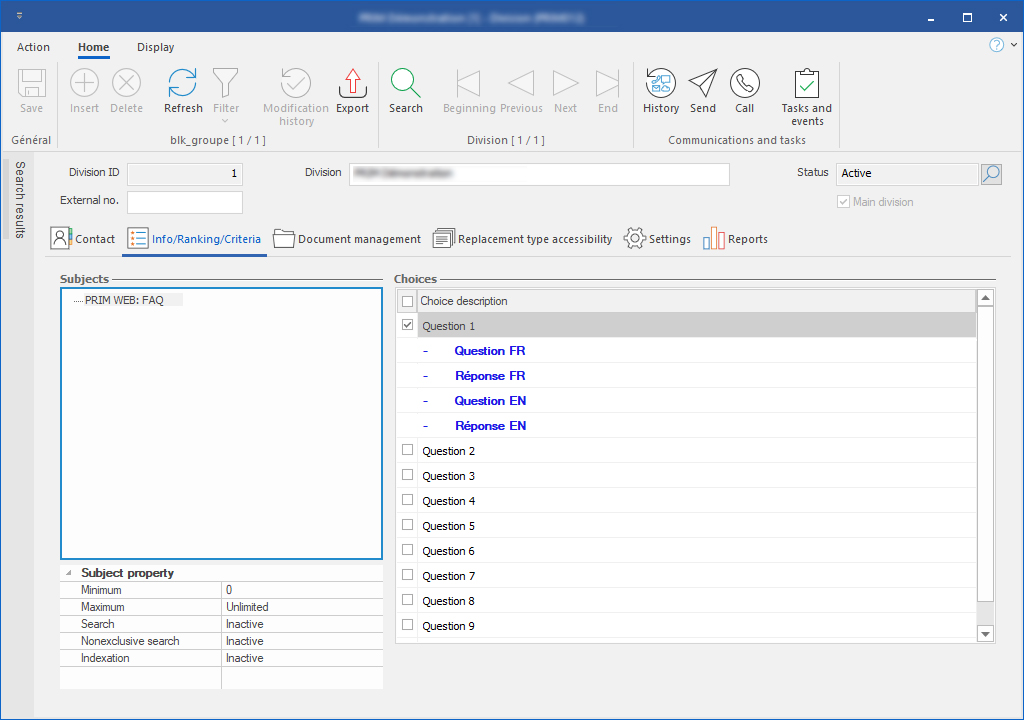 In the Division window, you will find what characterizes the division and some additional information.