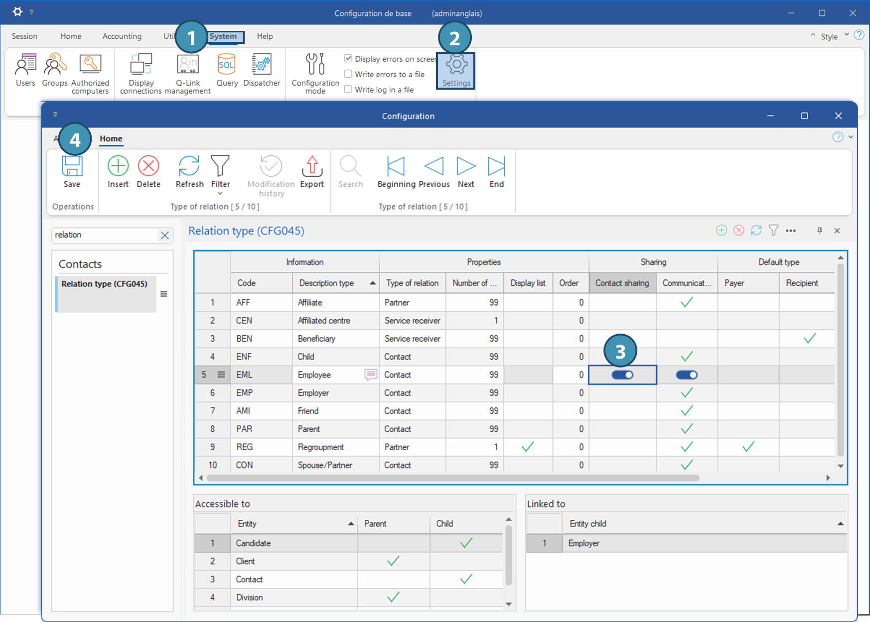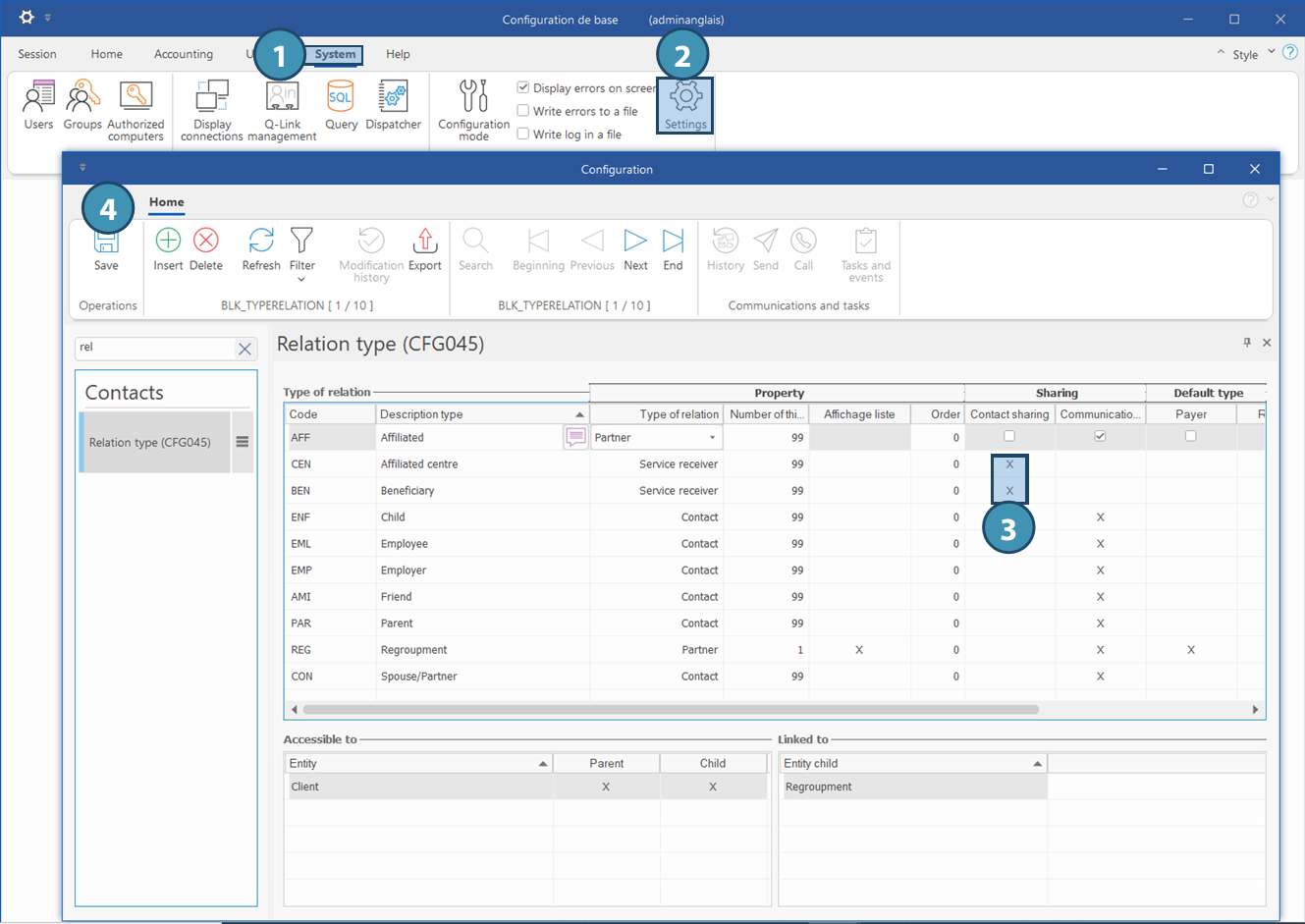 In order to be able to do so, the setting Contact sharing must first be ticked for the relevant relation types.