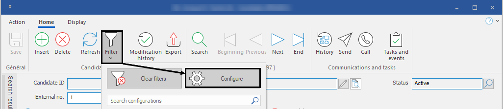 in the Search or Home ribbon, then on "Configure" to open the general display configuration window.