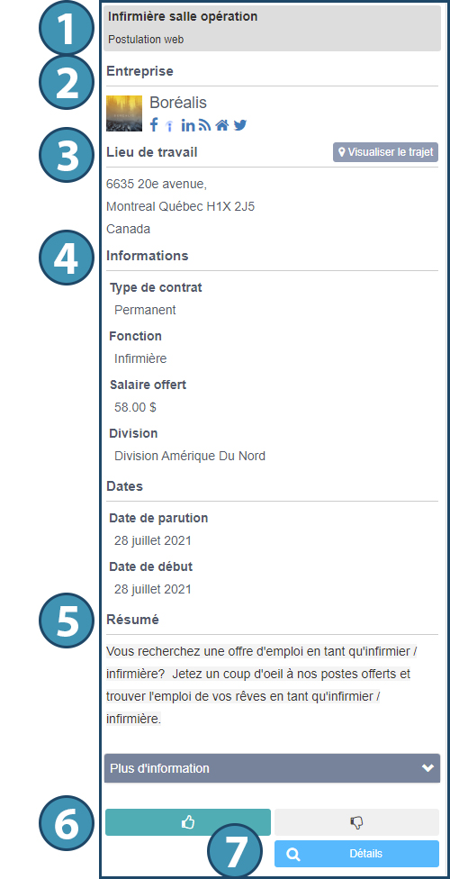 4. Job information. The information displayed depends on the configuration chosen by the agency.