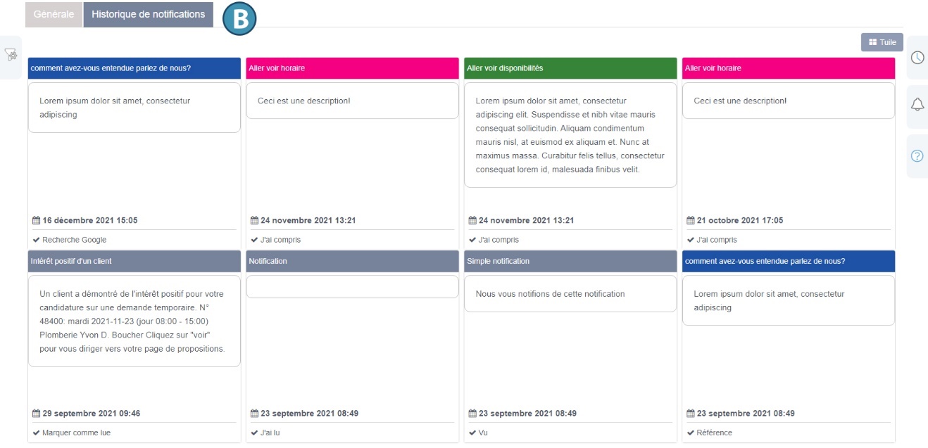 When a new notification is sent by the agency, it appears in the quick access tab as a dot on the notification icon(A) :