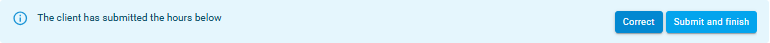 If the client has already declared the candidate's hours, the latter will not be able to edit the timesheet directly, but will instead have the option of submitting the hours declared by the candidate or correcting them, if necessary, by selecting the corresponding option below. If the candidate clicks on the "Correct" option, the timesheet will switch to editing mode.