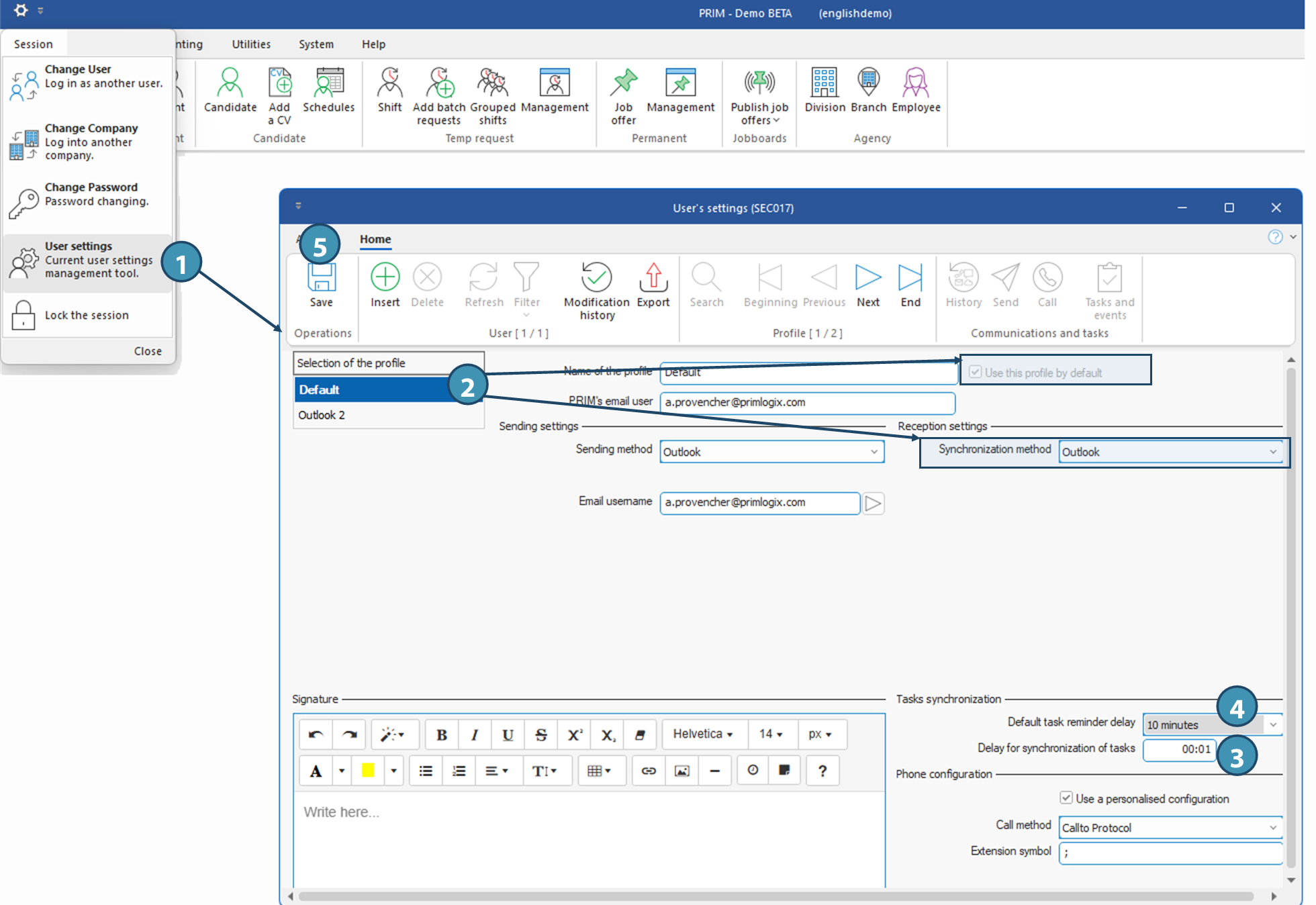 The next time the user logs on, the task will be synchronized in his Outlook, provided Outlook Desktop is open at the time of connection to PRIM.