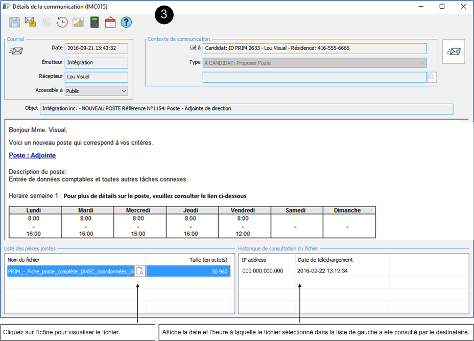 icon (Open folder) of the communication for which you wish to consult the history of the file sent.