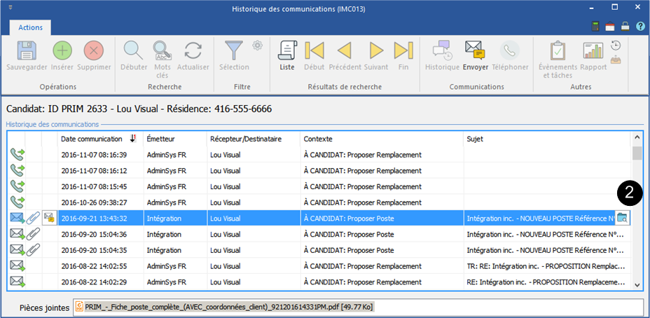1.Open the "Communication history" window .