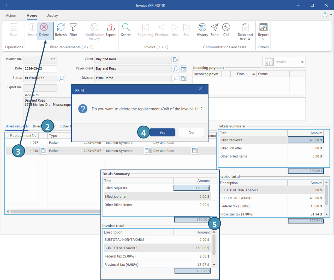 In the example below, an item is removed from an invoice. The procedure to remove an item from a pay is explained, but not illustrated.