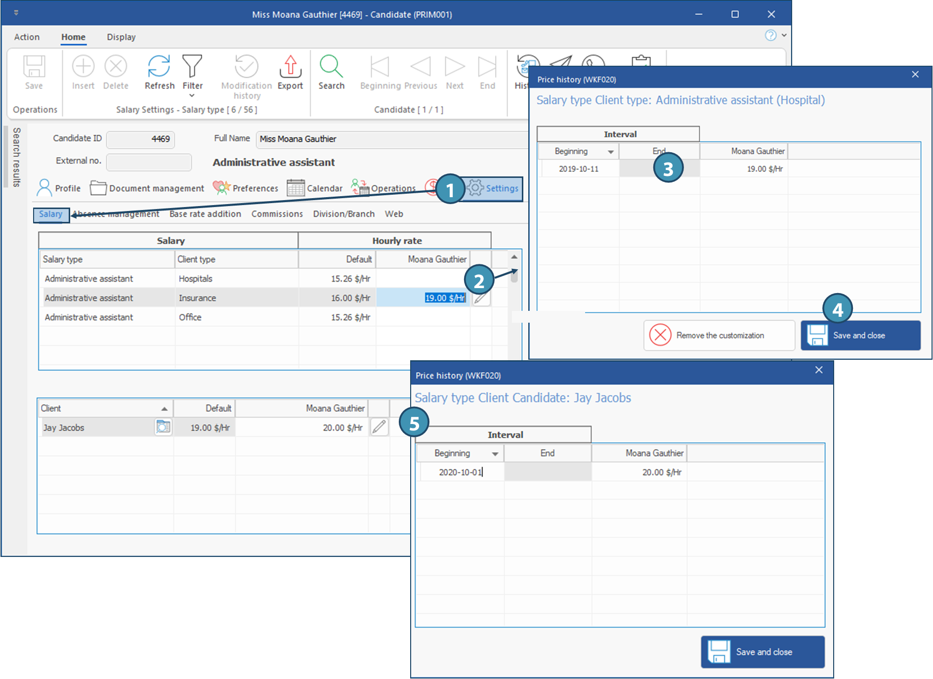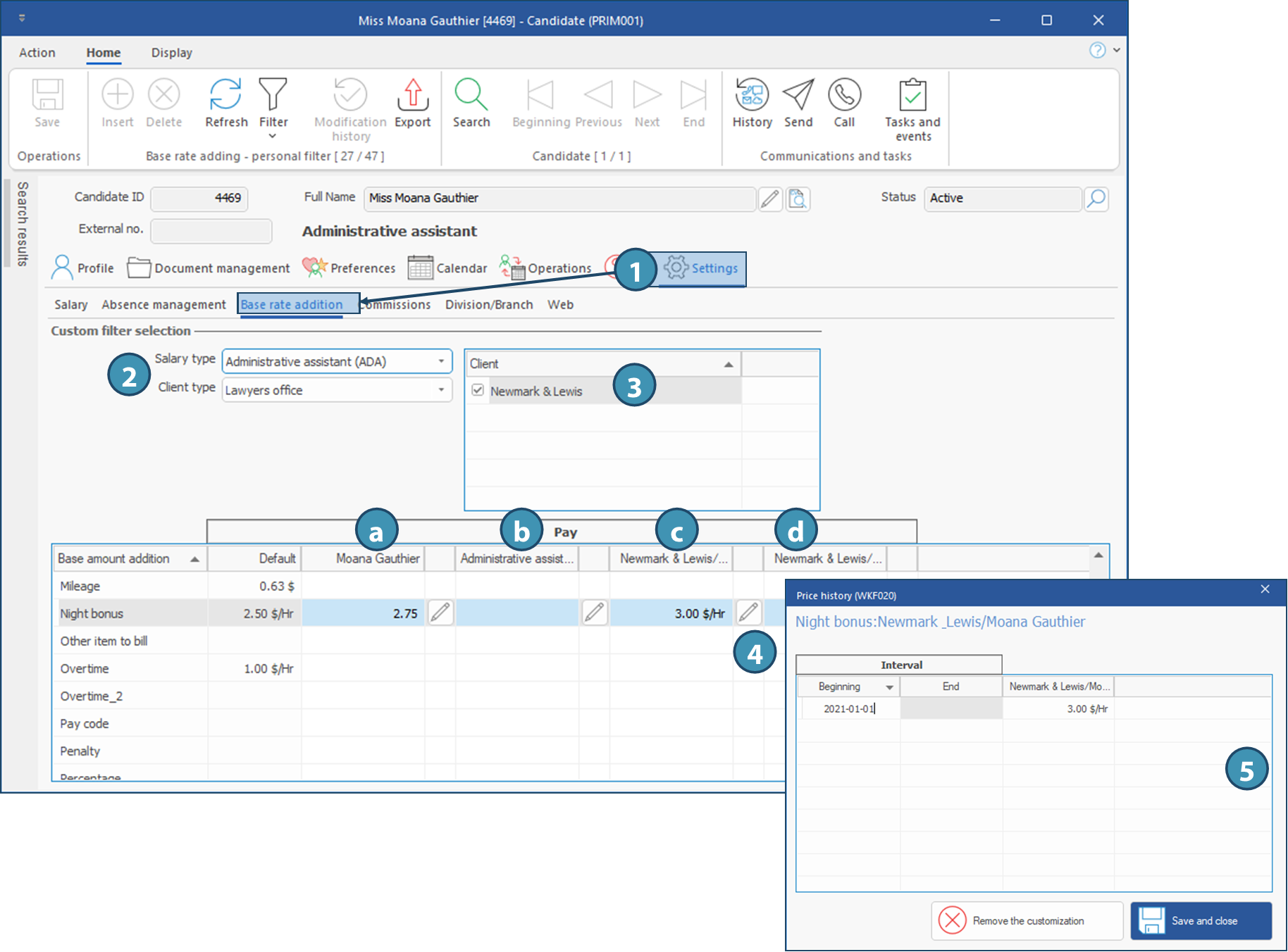 1.From the candidate's file, click on Settings tab, then on Base rate addition sub-tab.