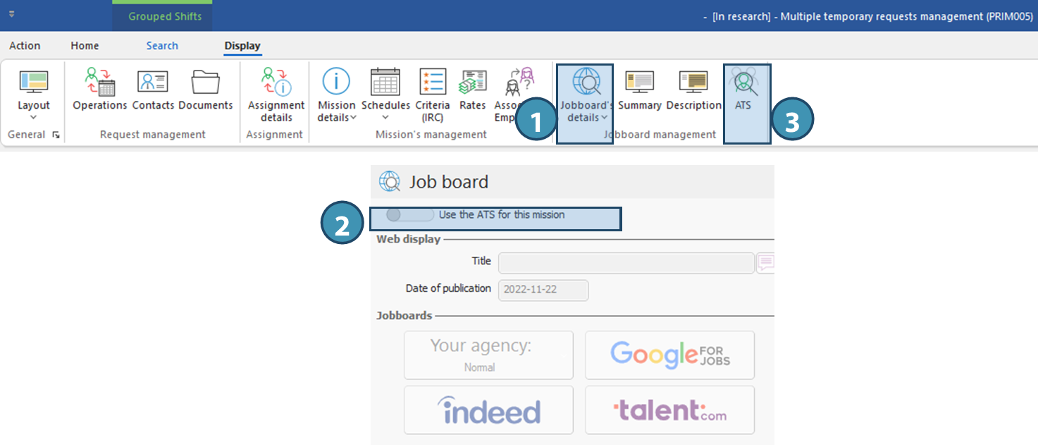 1. In Display, ribbon of the grouped request window, click on Jobboard's details.